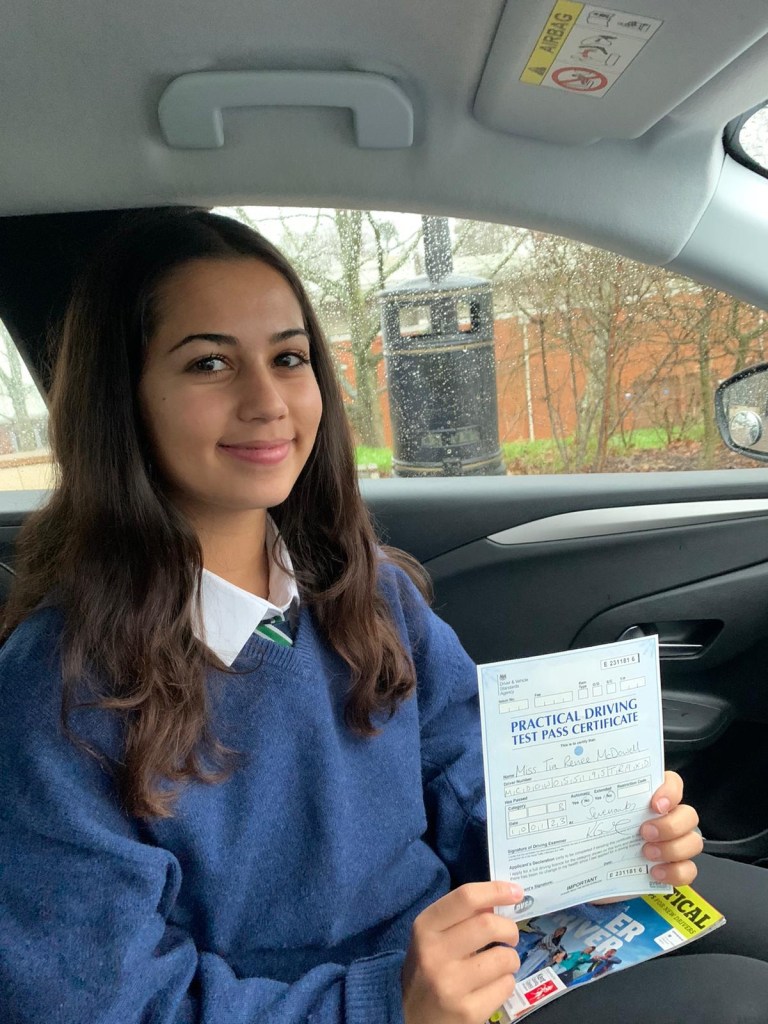 Congratulations to Alexandra on a first time driving test pass at Sevenoaks this week . Just 3 minor driving faults and complimented by the examiner on a very good drive . Well done .